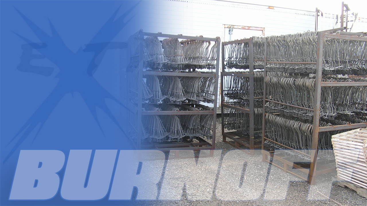 You can burn off the PVC is a high temperature furnace. This is a very efficient and cost saving method that will remove all the paint and PVC from the metal rack. Many plating and paint shops burn the coating off their racks at very high temperatures so all that remains is an ash. J.R.’s Commercial Cleaning is able to clean all your racks in one batch with our large walk-in oven.